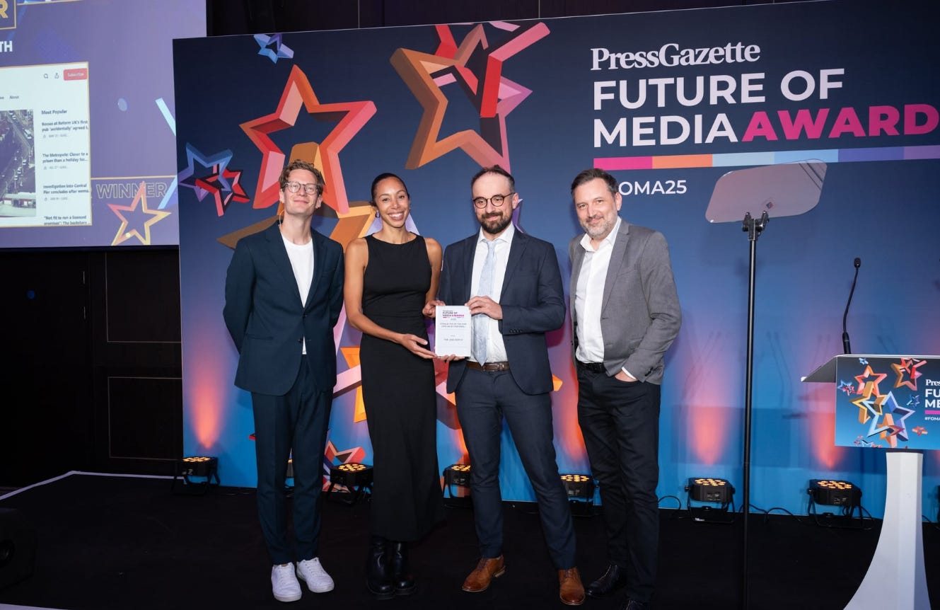 As of Thursday, The Blackpool Lead is an award-winning newsletter. I was in London for the Press Gazette Future of Media Awards 2025 where The Lead North (which includes our newsletters in Lancashire, Teesside, Southport and Calderdale) won the Best Newsletter (Specialist/Regional) award.