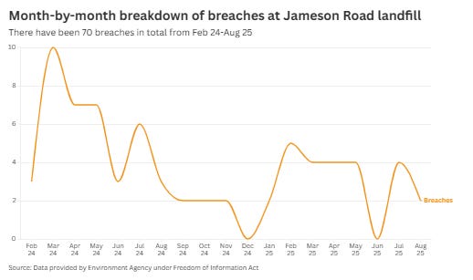 When we first wrote about the issues at Jameson Road landfill in early 2025, we didn’t think we’d still be here a year later learning about new levels of failure at the site.