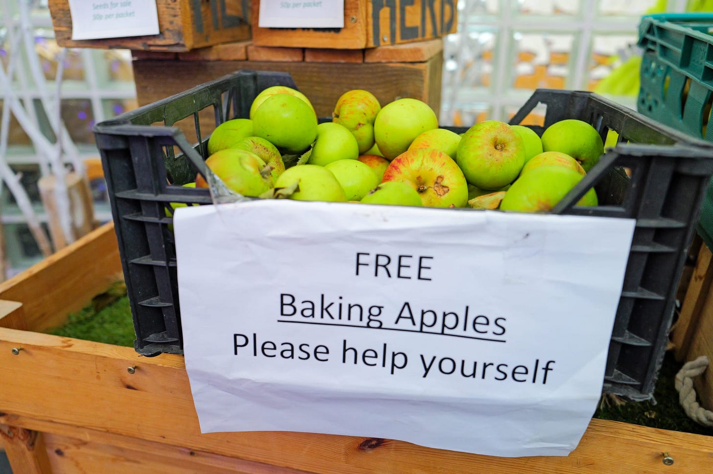 The cold, mist-like rain is being braved by people in the garden, a source of food for the café, which sells full English breakfasts for a subsidised price of £3.50.
